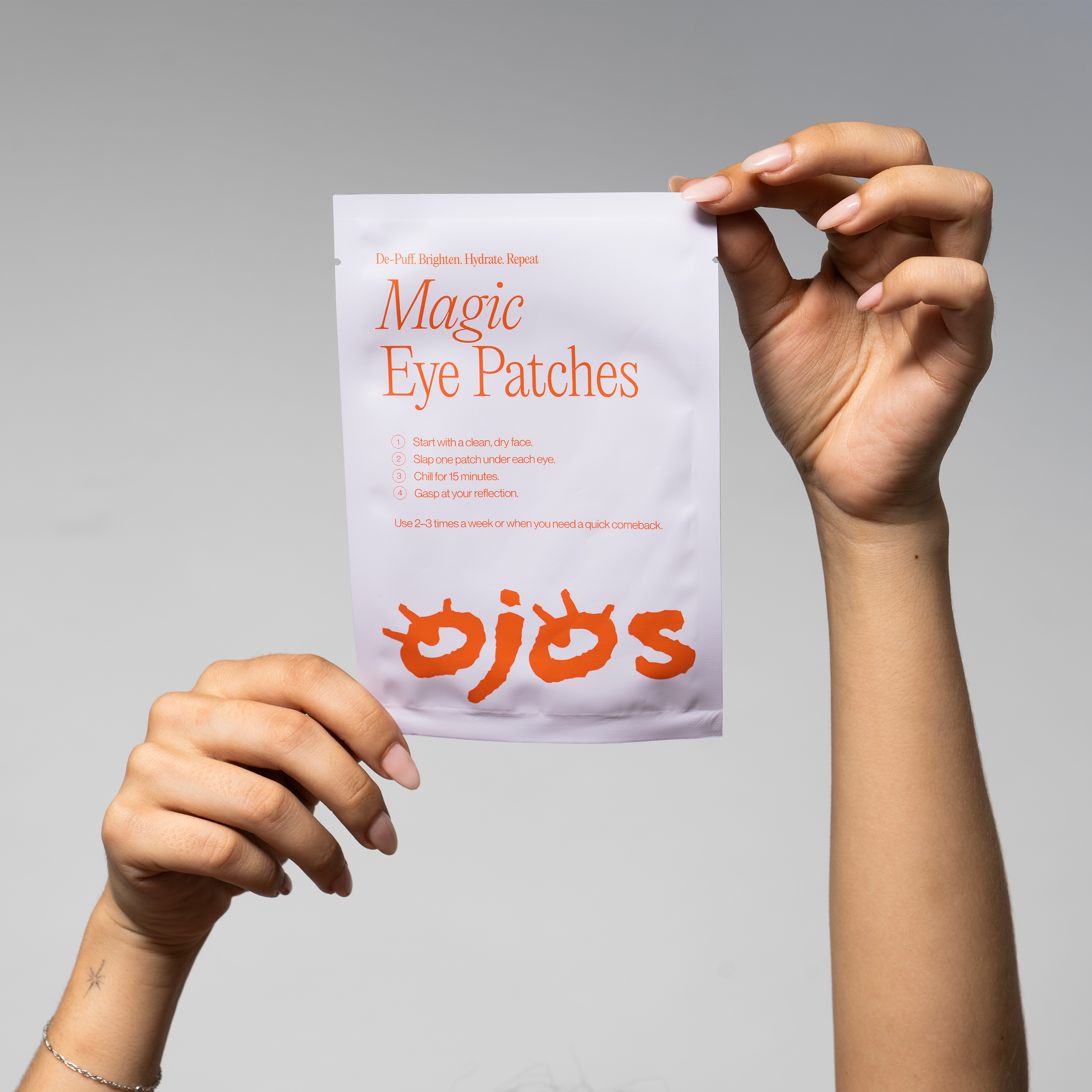 Each box includes 8 pairs of ojos magic eye patches packed with a blend of natural extracts, bioactive peptides, brighteners, and hydrators. Helps visibly reduce dark circles, puffiness, and fine lines.